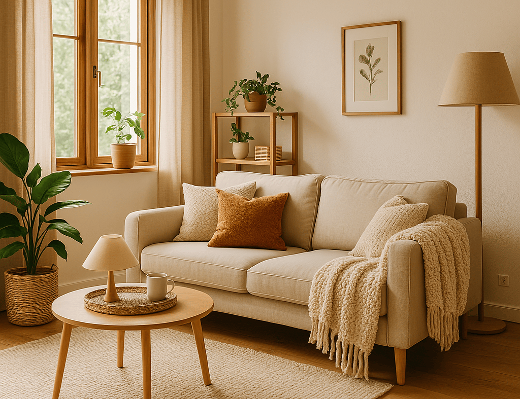 Dica prática: começa com um vaso de planta fácil de cuidar, como jiboia ou zamioculca. Ou incorpora madeira crua na decoração — ela aquece o olhar e o coração.