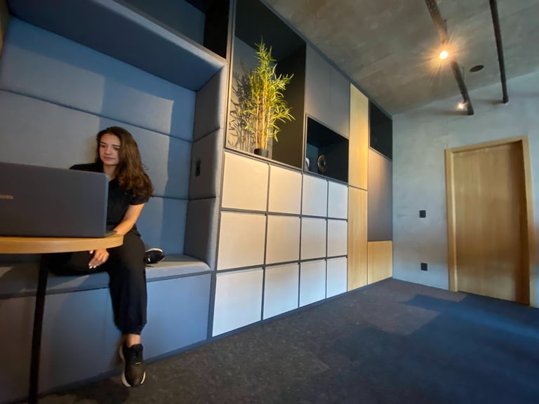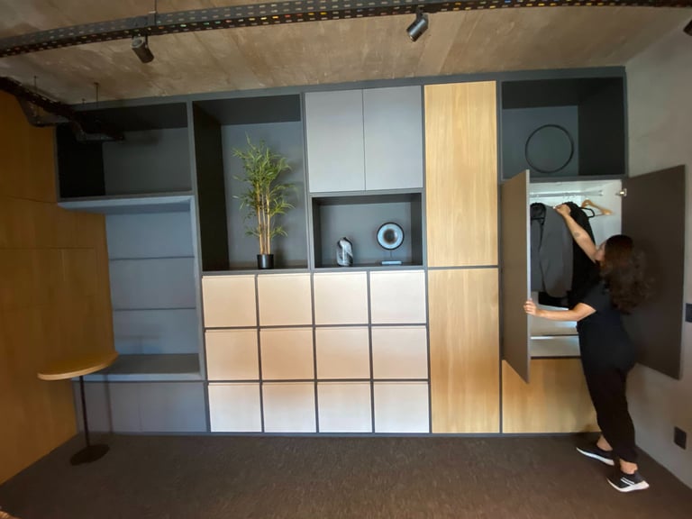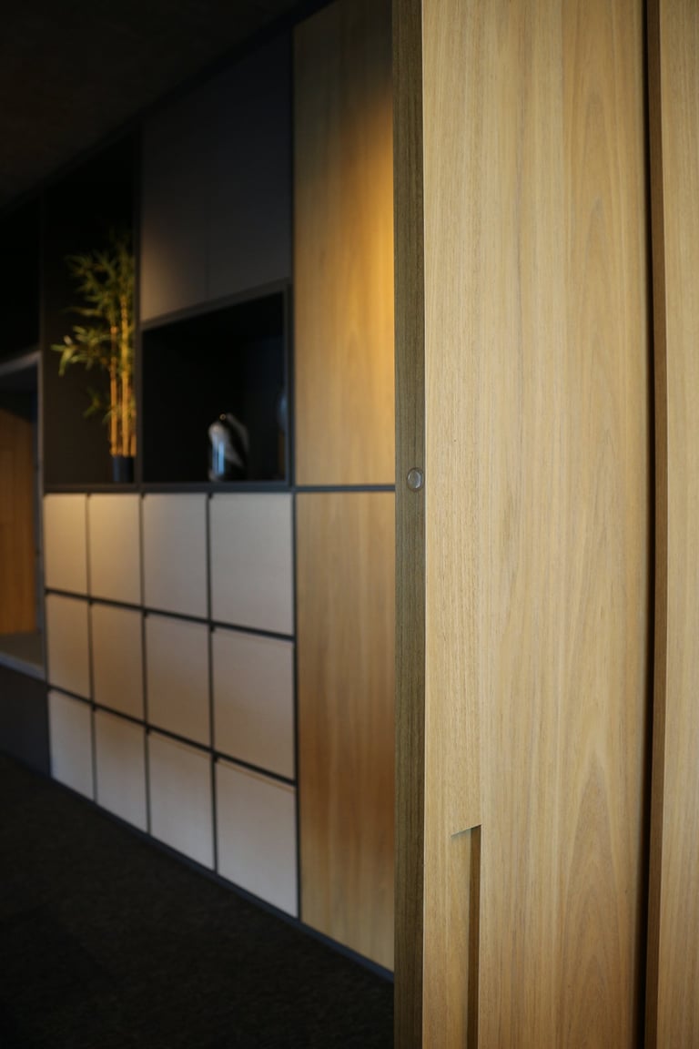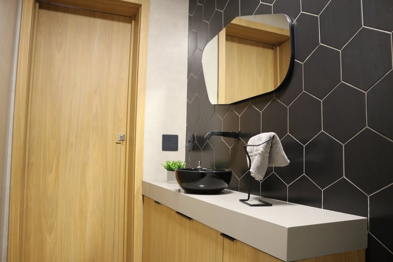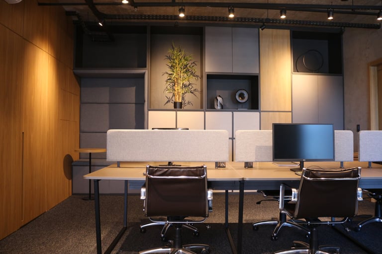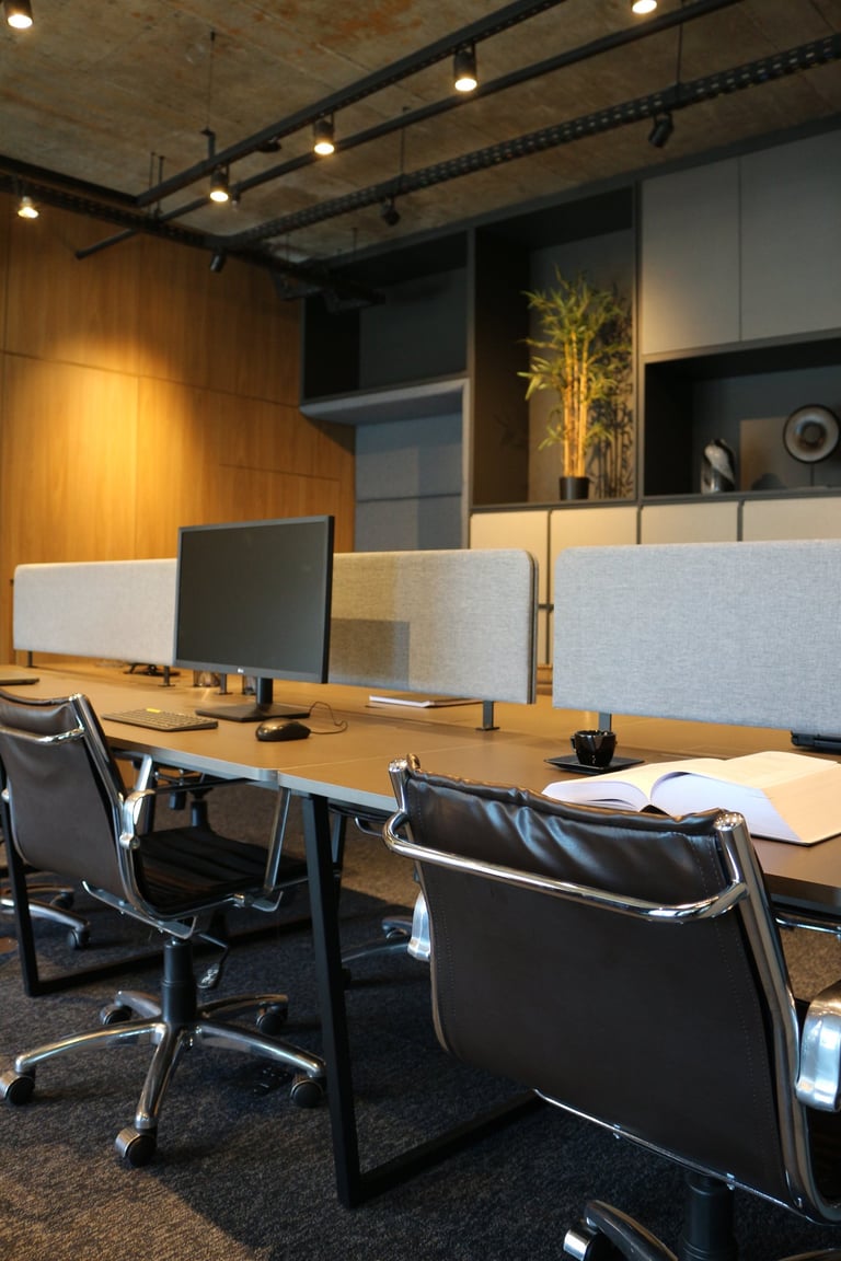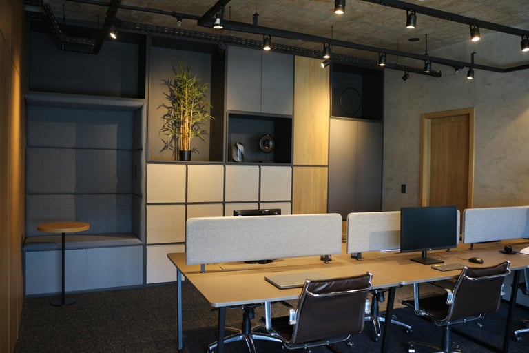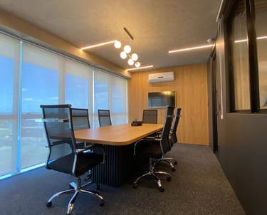 A linguagem do projeto é contemporânea, prática e alinhada à identidade visual do escritório. Os materiais, texturas e cores foram escolhidos para transmitir seriedade, incentivar a produtividade e manter o ambiente leve e funcional.